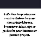 Let's dive deep into your creative desires for your next artwork by me, brainstorm ideas, or tips/guide for your business/passion project. ๐จ๐ก